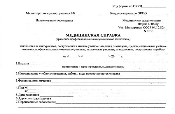 Учётную форму 086/у нередко называют справкой для поступающих в ВУЗы.